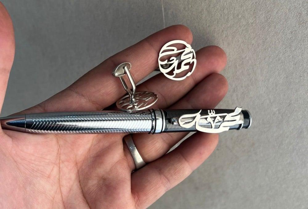 هدايا رجاليه بالاسم تفاصيل المنتج كبكات وقلم فاخره تفصيل الاسماء حسب الطلب مطليه بالفضه 925 ضمان ثبات اللون من ريماس